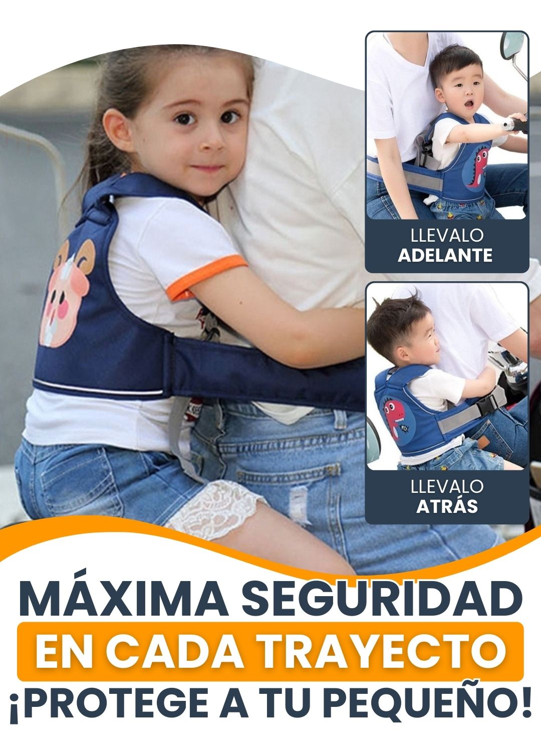 🚀 Posición flexible: Los niños pequeños van al frente y los mayores en la espalda.