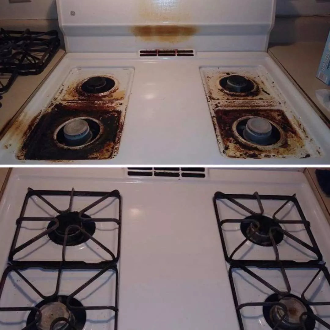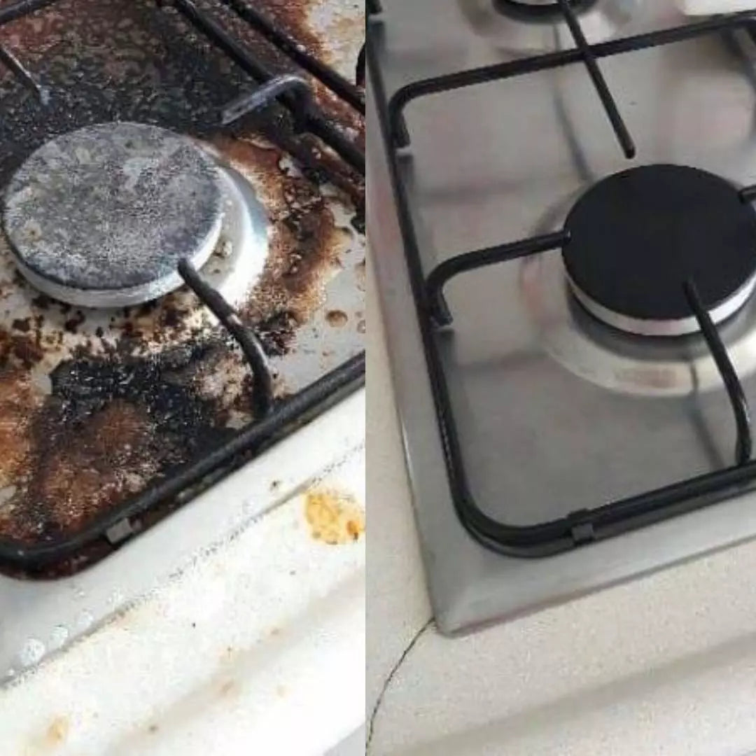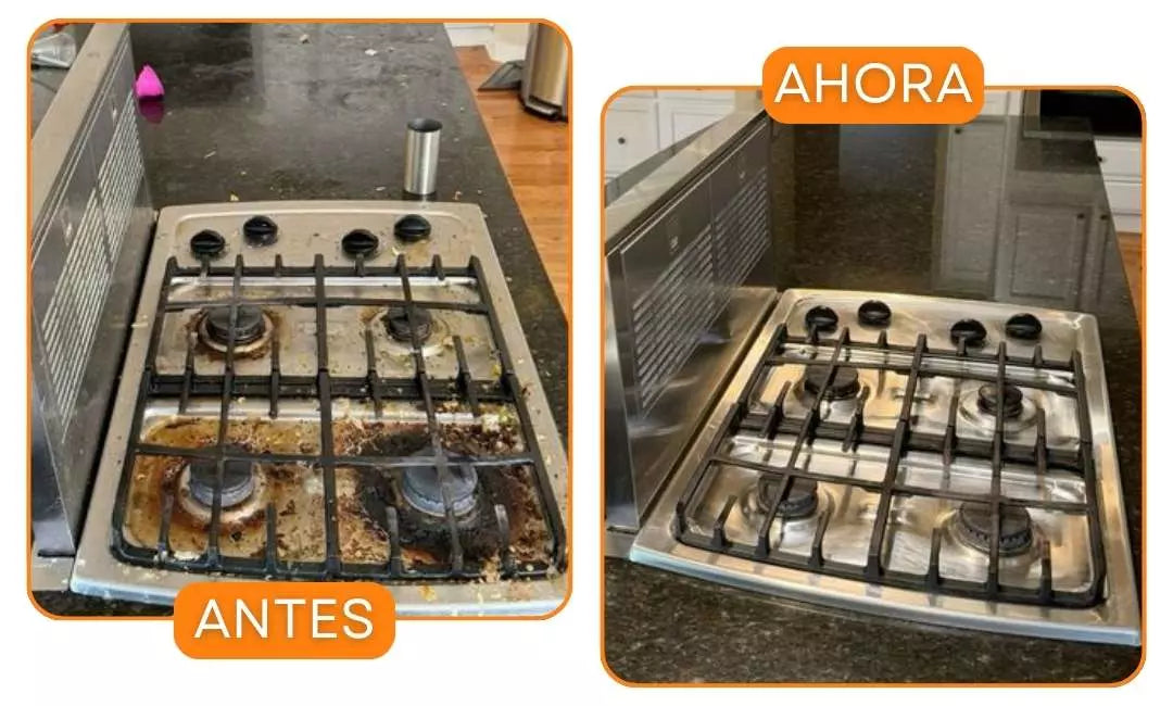 Es apto para estufas, hornos, campanas, electrodomésticos, ollas, azulejos y más. No daña ni opaca los materiales.